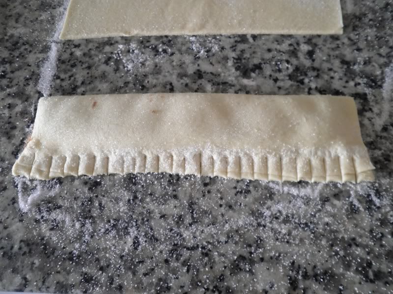 El sello va un poco free-style. Hay gente que las pliega sobre sí mismas, por ejemplo. Yo prefiero aplanar la zona que junta los pliegues y hacer cortecitos con el cuchillo. ¿Por qué? Pues porque ese aspecto es el de la napolitana que me pierde, y soy original a rabiar. (Gracias, AnaRosa.)