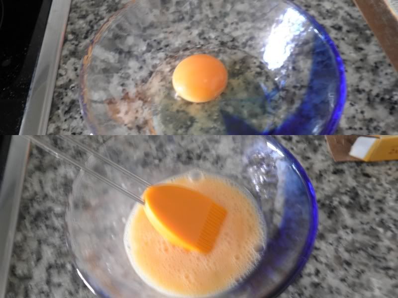 Con un pincel de silicona (o con una cuchara, ya que estamos en modo cutre) pintamos la superfície de las napolitanas.